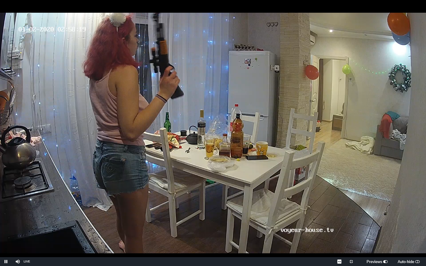 No nudity but this is a good example of how a girl dresses can be such a voyeur tease. Just enough to keep you watching - jean shorts that go up the crack of her ass (wedgie) and loose top showing that she has nice big titties. And the bare legs - mmmmm.